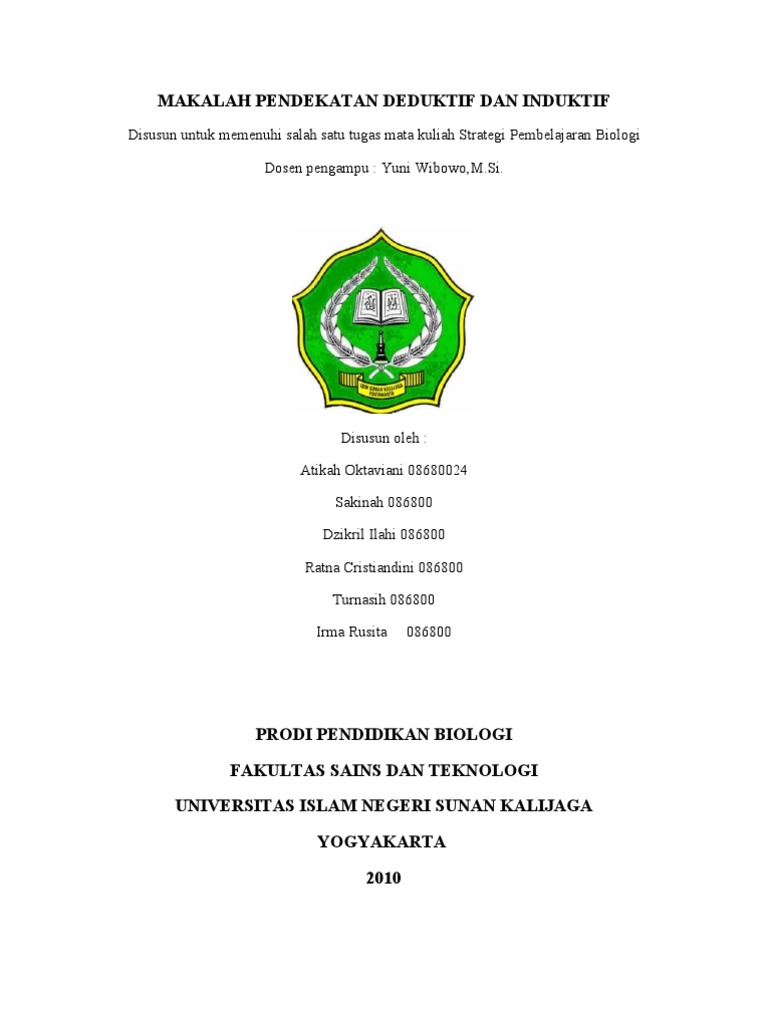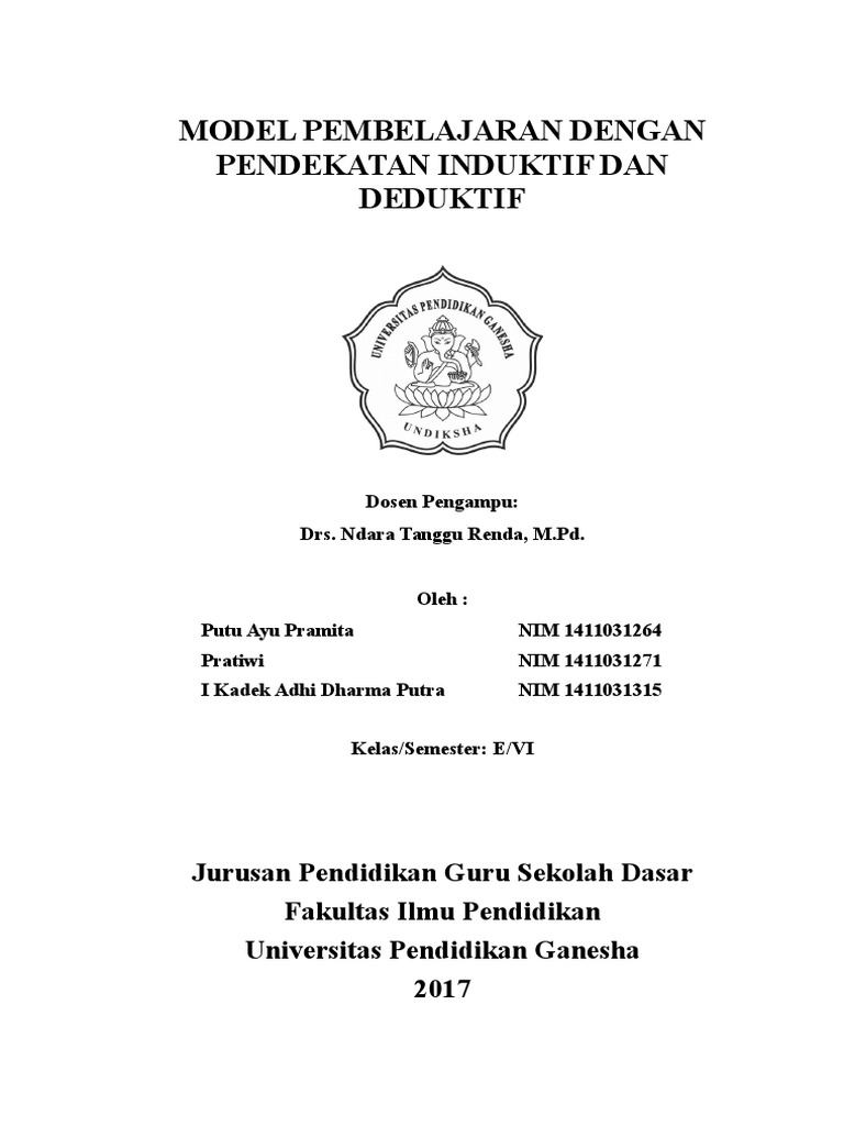 Mengetahui perbedaan paragraf induktif dan deduktif, mengetahui cirinya dan melihat contohnya. Pengertian dan penjelasan penalaran deduktif. 15112597 penalaran bab i pendahuluan a. Penerapan penalaran induktif dan deduktif. Karena paragraf itu dikembangkan dari pernyataan umum dengan mengemukakan pernyataanpernyataan khusus, dapatlah dikatakan bahwa penalaran paragraf deduktif itu berjalan dari umum ke khusus. Paragraf deduktif adalah paragraf yang menempatkan gagasannya pada awal paragraf. Dinamis berpandangan untuk menganalisa konsep penalaran yang bertolak dari. Documents similar to makalah penalaran induktif dan deduktif. Menurut kaidah bahasa indonesia, penalaran deduktif berarti penalaran yang bersifat deduksi, yaitu. Penalaran deduktif adalah penalaran dari yang umum ke yang detail/khusus. Makalah penalaran deduktif & induktif nama: Dalam penalaran deduktif dan induktif. Penalaran induktif (prosesnya disebut induksi) merupakan proses penalaran untuk menarik suatu prinsip atau sikap yang berlaku untuk umum jadi, penalaran deduktif bergerak dari sesuatu yang umum kepada yang khusus.