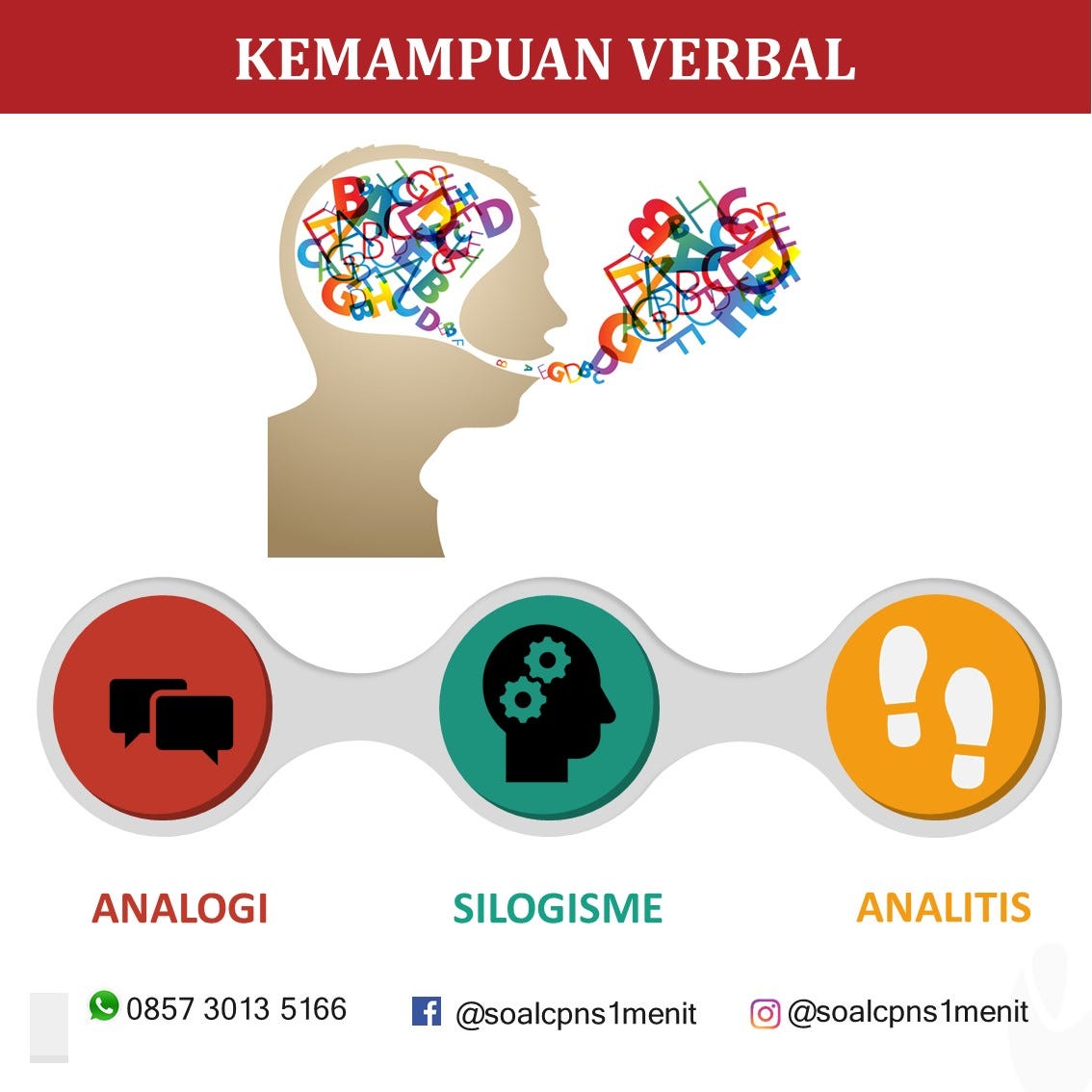 Kemampuan verbal meliputi analogi, silogisme, dan analitis. Soal tes tiu cpns 2021 menilai tiga kemampuan peserta, yakni kemampuan verbal, kemampuan numerik, dan kemampuan figural. Analogi, dengan tujuan untuk mengukur kemampuan individu dalam bernalar melalui perbandingan dua konsep kata yang memiliki hubungan tertentu kemudian menggunakan konsep hubungan tersebut. Dalam soal soal ujian seleksi tes psikotes kemampuan verbal, para peserta dibutuhkan untuk bisa dalam mengartikan arti dari sebuah kata. Kemampuan verbal yaitu kemampuan menyampaikan informasi secara lisan maupun tulis : Dan jangan lupa untuk share contoh soal dari tes verbal ini yang sangat lengkap dengan kunci jawabannya, dan cobalah untuk share difacebook. Tes kemampuan verbal ini meliputi sinonim (persamaan kata), antonim (lawan kata), analogi dan kolerasi makna. Berikut, 50 contoh soal cpns tes kemampuan bidang ( tkb) pendidikan beserta kunci jawaban. Tes perbendaharaan kata merupakan tes yang bertujuan untuk mengukur ketelitian dan kecermatan seseorang dalam mengelempokkan kata. Soekarno adalah salah satu peserta yang akan mengikuti tes cpns. Contoh soal cpns sudah banyak beredar di internet. Kisi kisi soal tes cpns analogi, dengan tujuan mengukur kemampuan individu dalam bernalar melalui perbandingan dua konsep kata yang memiliki hubungan tertentu kemudian menggunakan konsep hubungan tersebut pada situasi yang lain. Sedangkan, komunikasi non verbal adalah komunikasi yang umumnyu menggunakan bahasa tubuh seperti gerakan tangan, raut wajah, gelengan kepala, tanda, tindankan dan sebagainya.